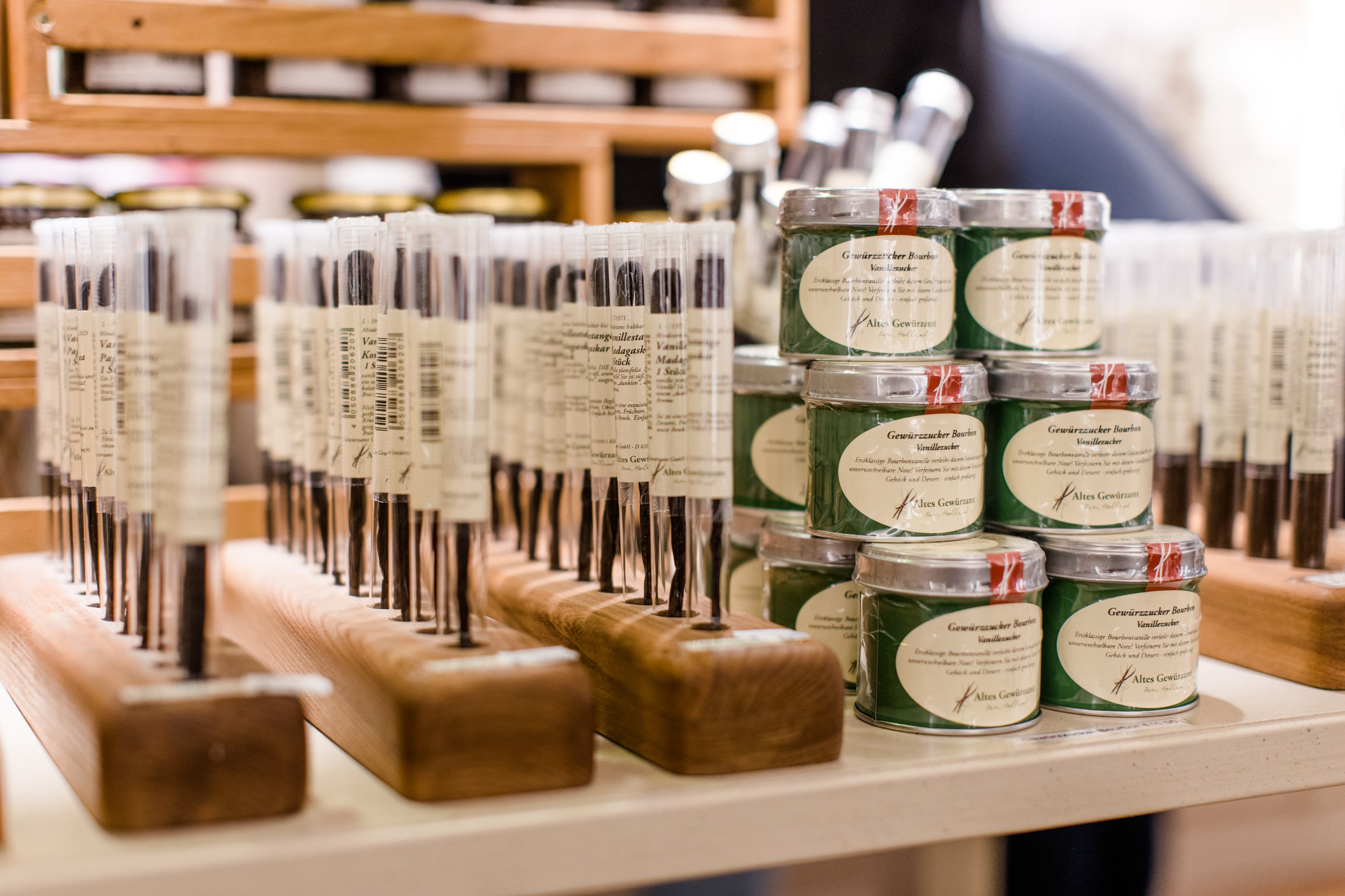 Von edelsten Einzelgewürzen über Paprika- und Chilisorten, Vanille, Kräuter und Blüten bis hin zu erlesenen Pfeffersorten oder exklusiven Salzen findet der Genießer alles für die perfekte Gewürzküche. Vom Einkauf der Gewürze über Auswahl und Verarbeitung zu Kompositionen wie Curry Anapurna, Melange Noir oder Sieben – mit Herz und Hand, mit Genuss und Leidenschaft. Dabei landet nur beste Qualität in den grünen Gewürzdosen. Ehrliche Produkte – ohne Farbstoffe, Geschmacksverstärker, Konservierungsstoffe oder künstliche Aromen. Die Gewürzmischungen sind das Herz der Manufaktur. Diese werden von der Idee bis zur Verpackung im Alten Gewürzamt hergestellt.